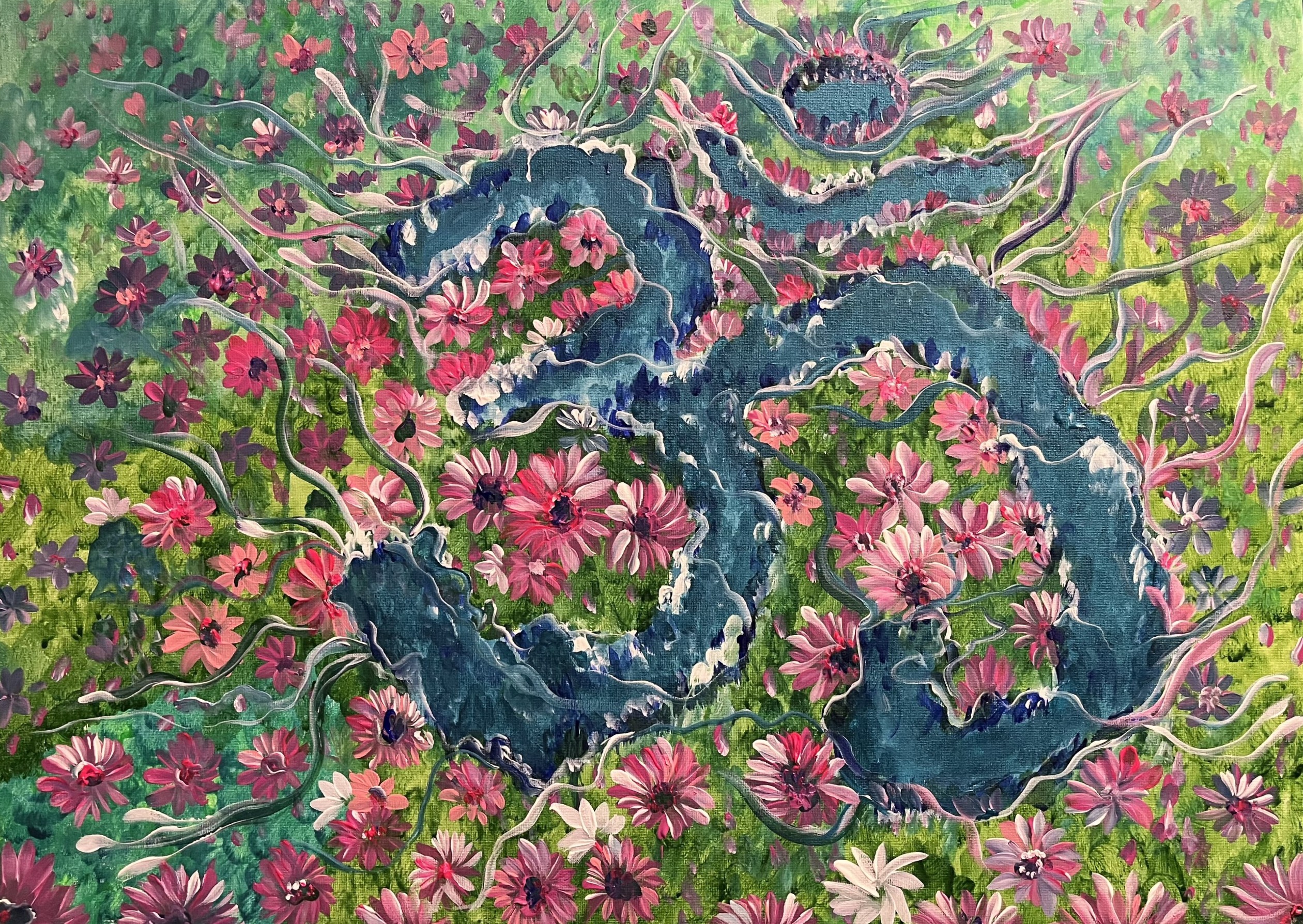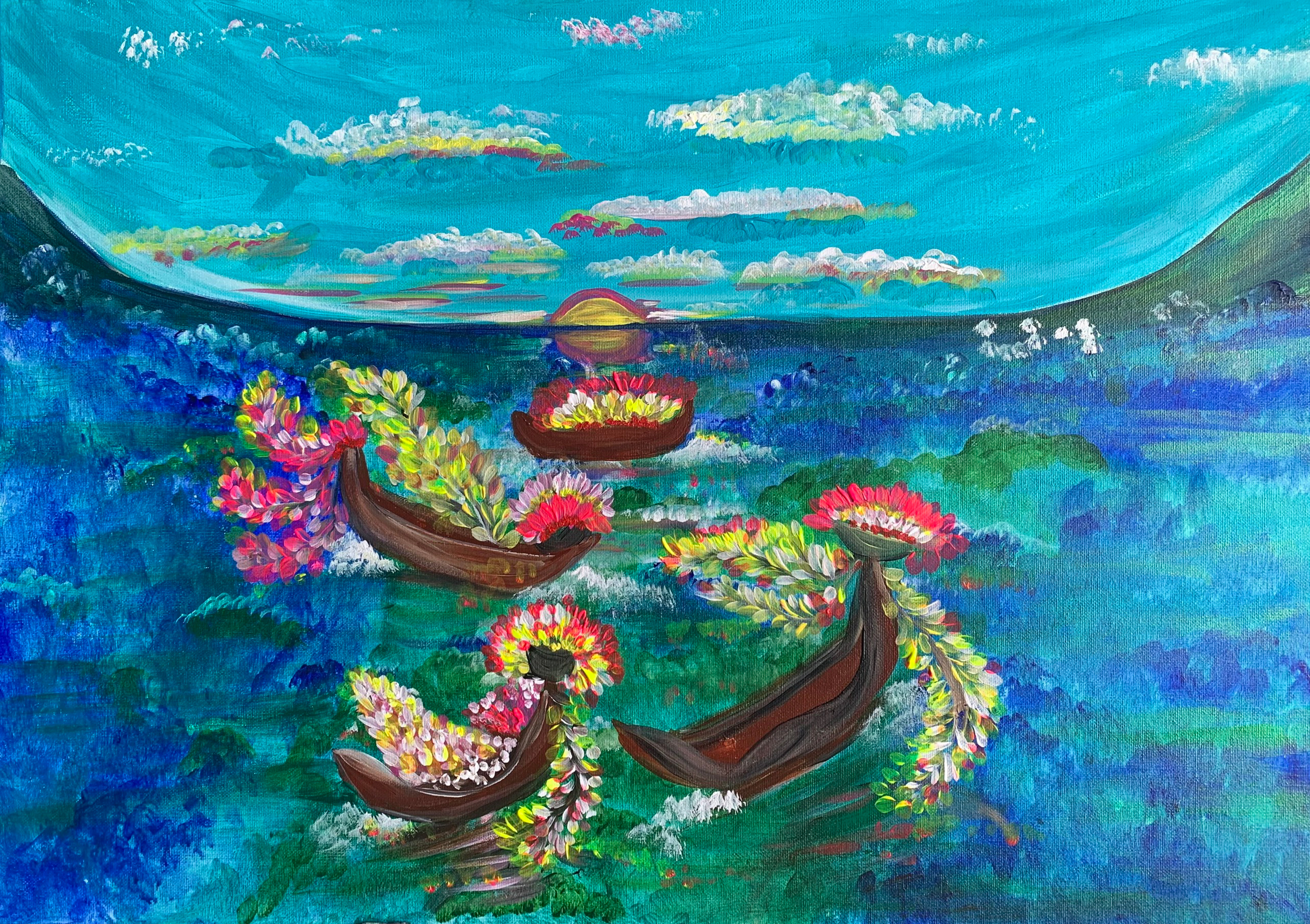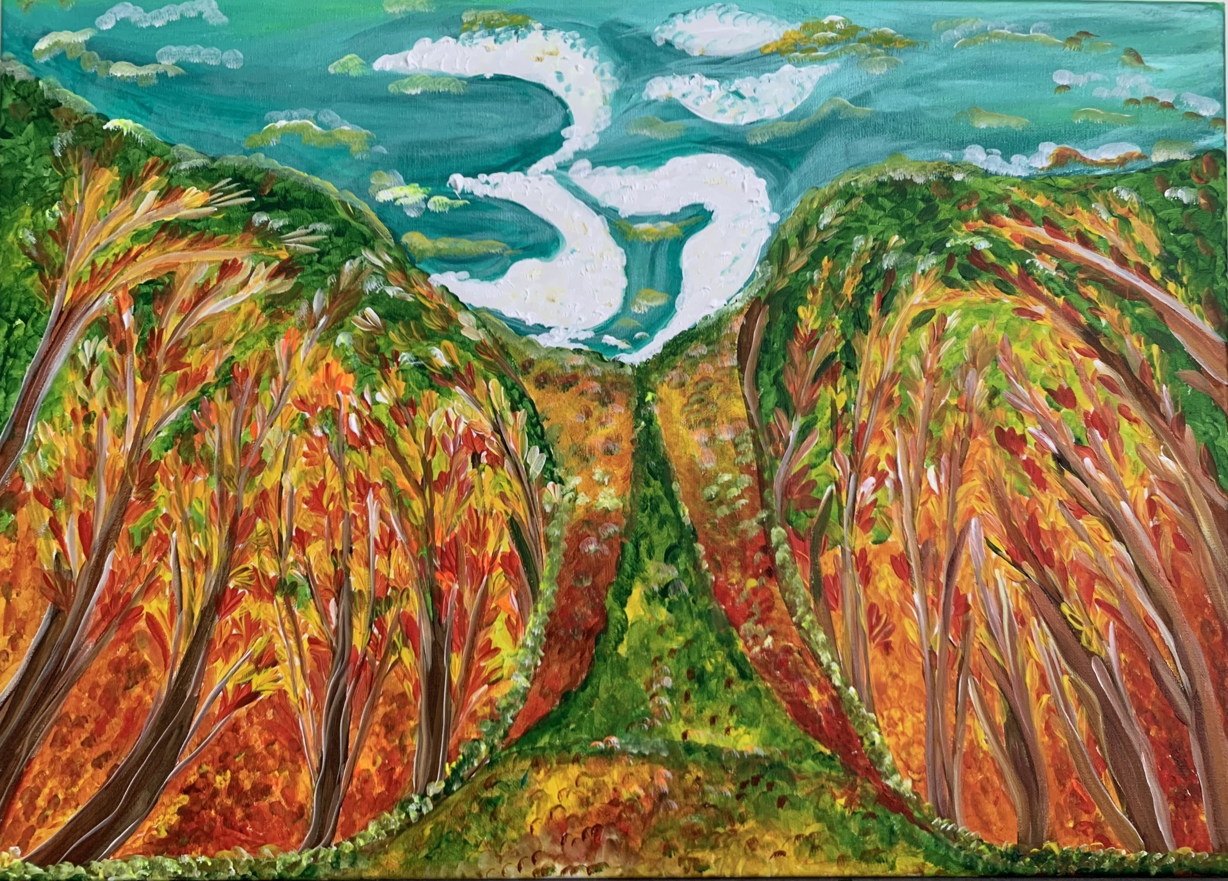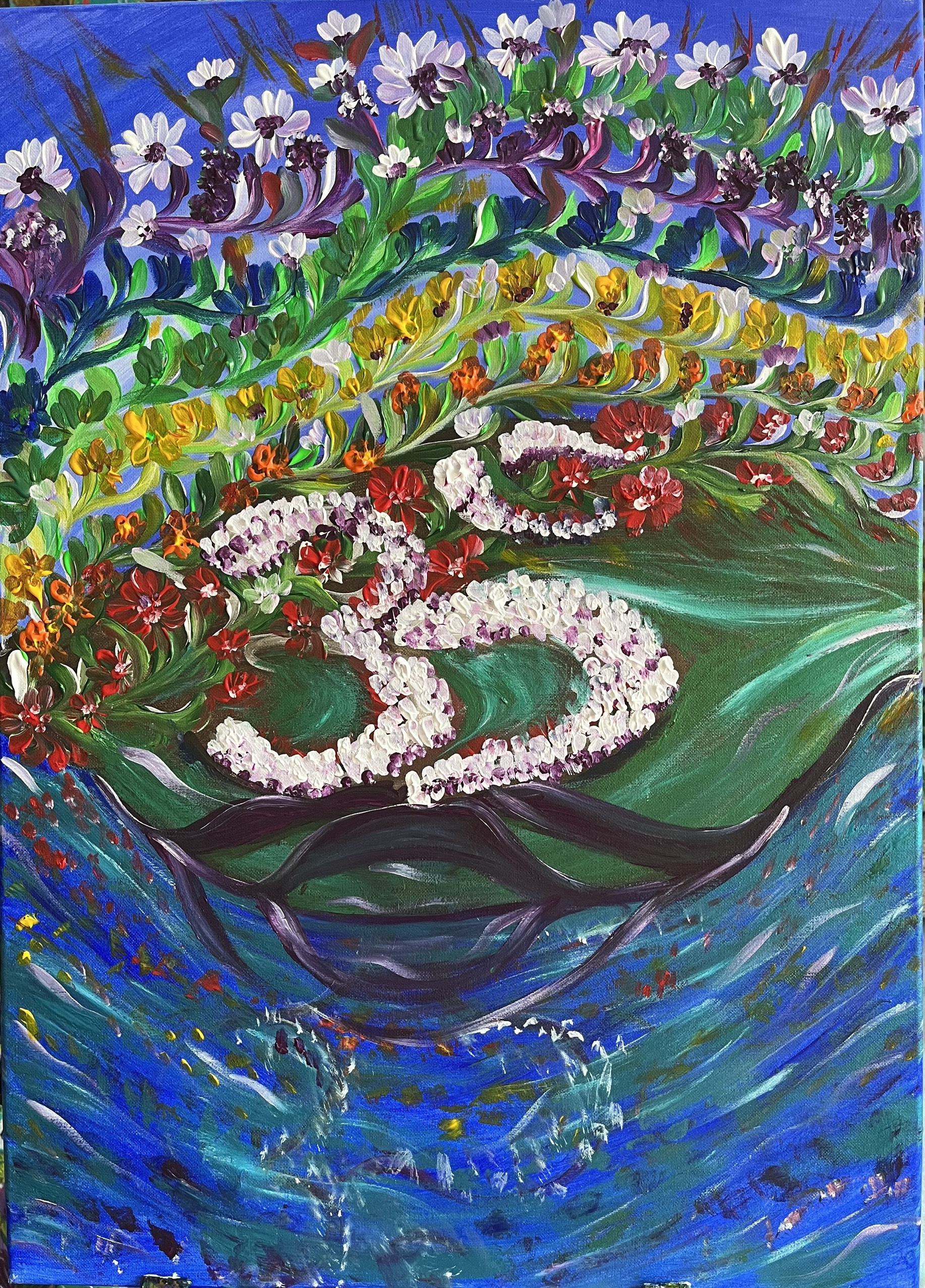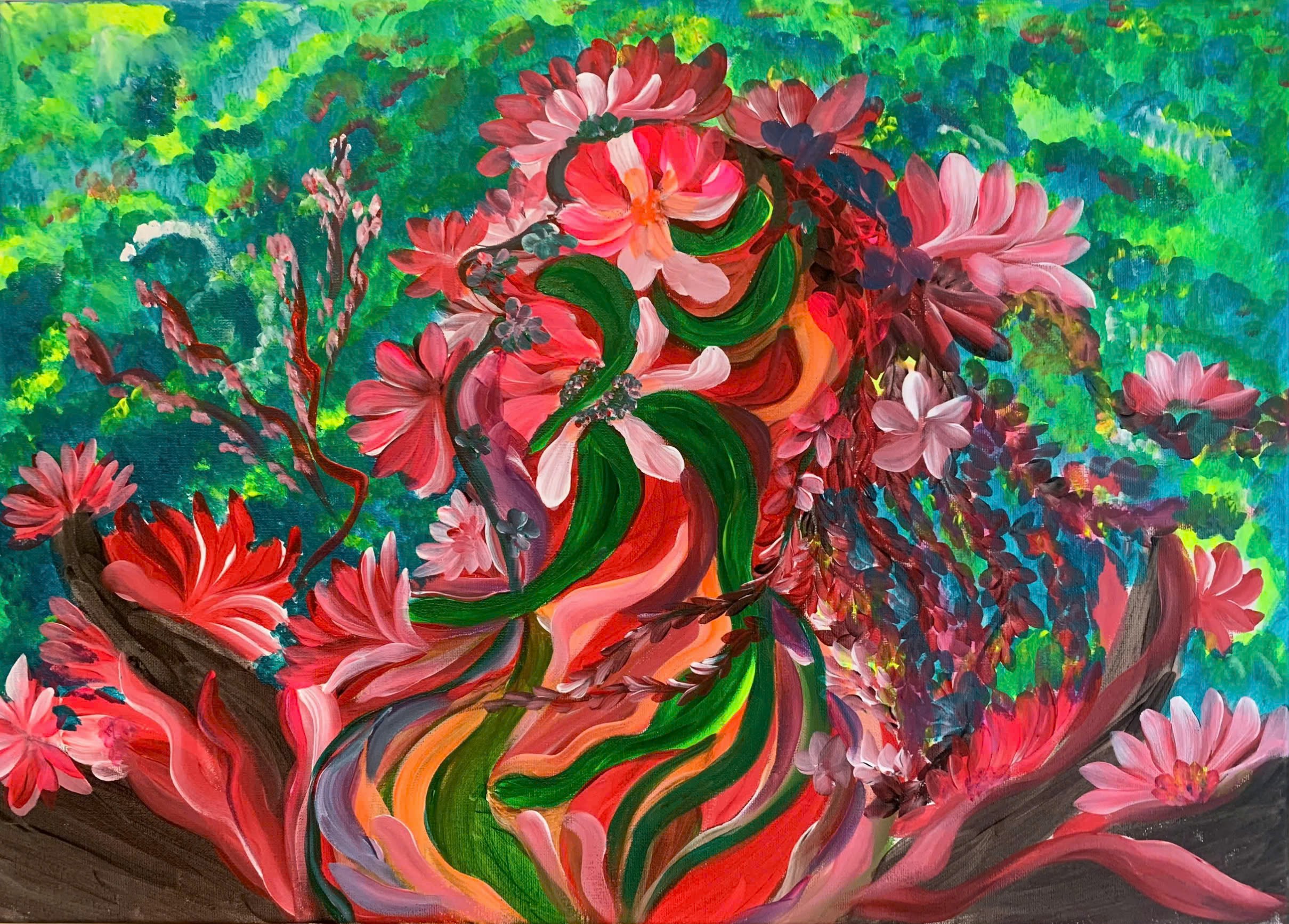 The artist of the painting is Yogi Hue Vo, a Yogi with years of experience in Kundalini Yoga, Mantra & Meditation. She is the founder of MantraLife, a large community that practices Kundalini Yoga, Mantra & Meditation.